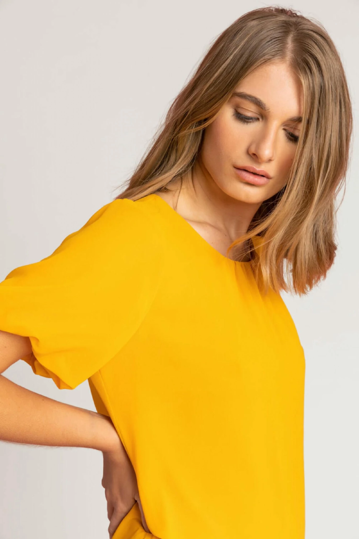 This easy-to-style wardrobe winner is essential for any ladies collection. Cut to a relaxed fit, this round neck top has an adorable puff detail to the short sleeves and is dual-layered to add a modest touch. Wear this chiffon style with a light denim jacket and jeans for an everyday style to take you from a picnic in the park and beyond.